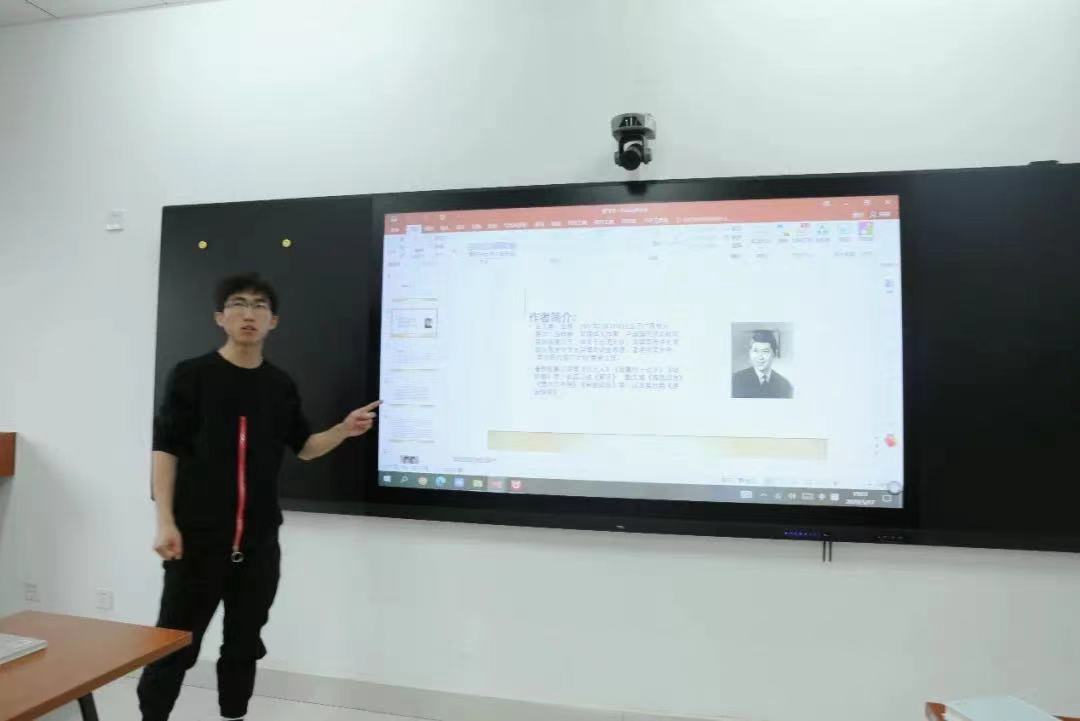 19级的曹飞宇同学分享的是白先勇先生的《台北人》。他说到,这本书是描写了台湾社会各阶层人物在新旧时代交替中的人生转变,具有历史兴衰和人世沧桑感。接着他从白先勇先生的人物轶事介绍起,充满趣味性,并给大家分享了文章《孤恋花》,最后并满含深情地向我们朗诵了其中的一部分。