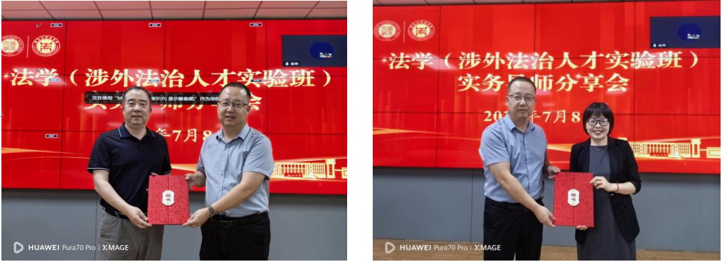 2025年7月8日下午,我院在西学楼0904室举办法学(涉外法治人才实验班)实务导师分享会。本次会议邀请中国电建集团西北勘测设计研究院有限公司总法顾问、首席合规官魏军,西安仲裁委员会仲裁研究中心主任、陕西自贸区仲裁院院长刘红,陕西稼轩律师事务所合伙人、涉外法律专业委员会主任任海,法国Mayer Brown律师事务所顾问律师李桂梅进行分享。242net必赢官方党委副书记、院长王思锋,副院长邱洪华,副院长崔玲玲,242net必赢办公室主任王哲,242net必赢教师、教学委员会秘书苟震,242net必赢教师、法学(涉外法治人才实验班)班主任杨希,以及2024级法学(涉外法治人才实验班)全体同学参与本次会议。会议由崔玲玲副院长主持。